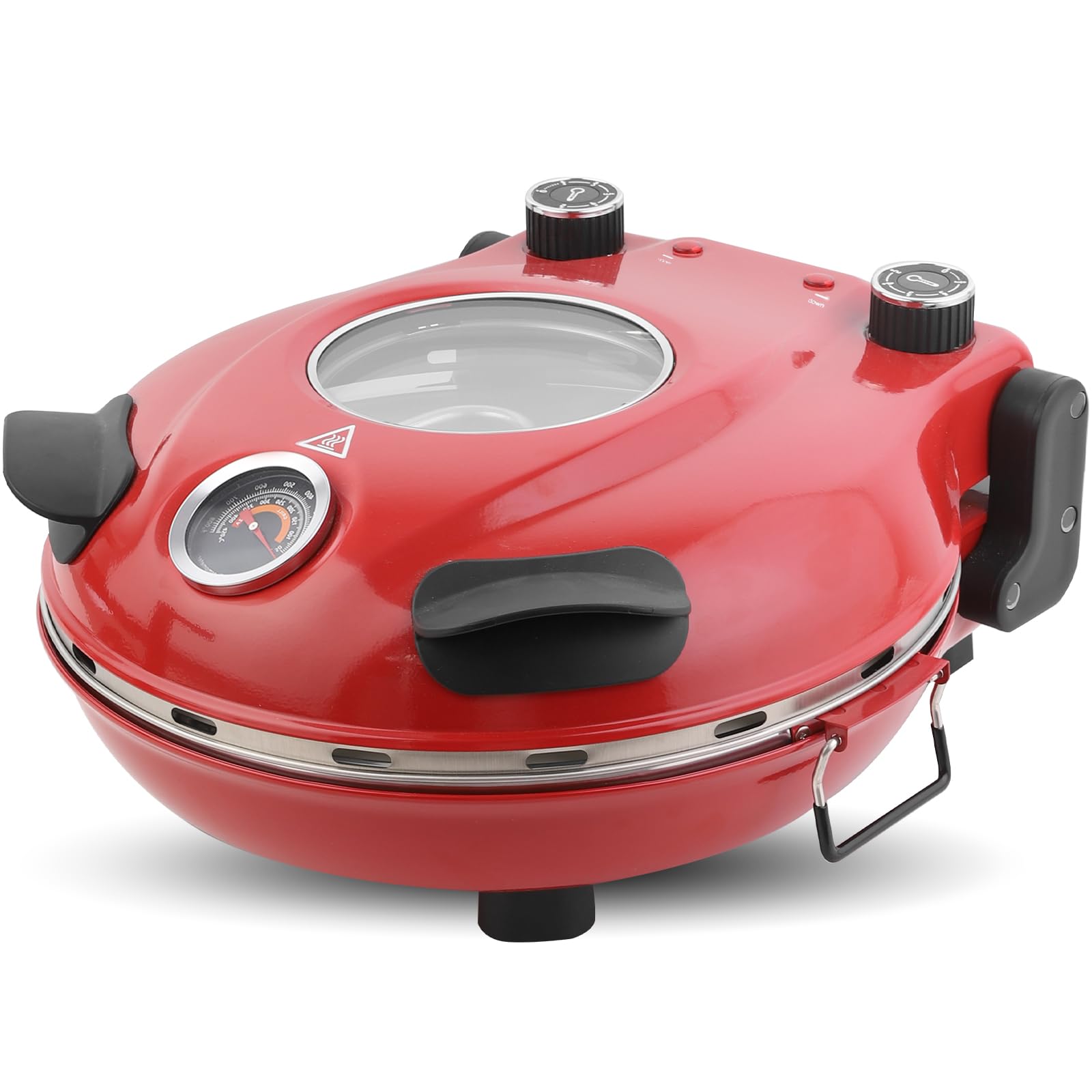 YIBAKE Pizzaofen Elektrisch, 1200W Pizzaofen in 4-Min-Pizza, 31cm Feuerfeste Pizzastein, 420℃ Pizzabackofen, inkl. Pizzaschaber & Pizzaschieber, Rot