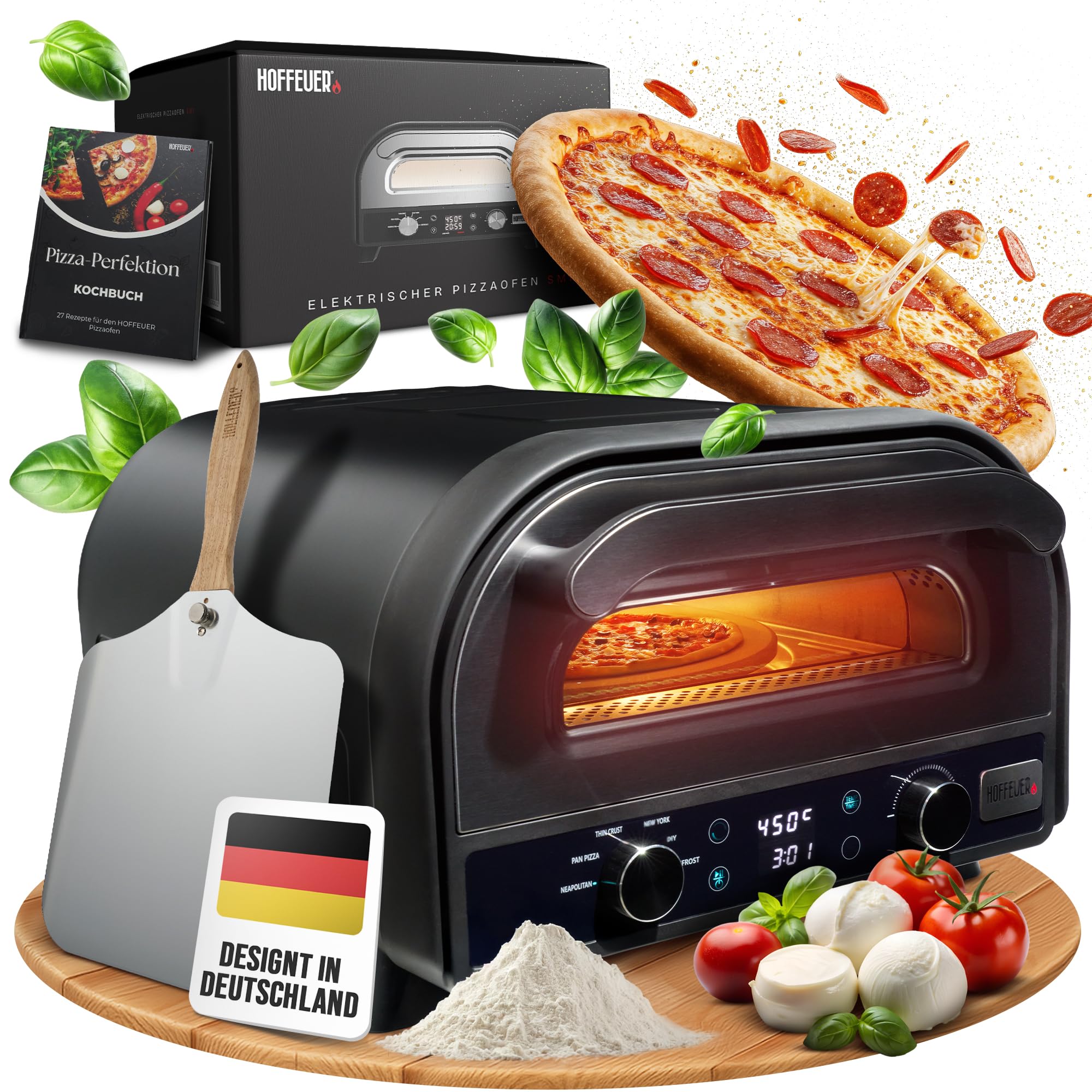 HOFFEUER Pizzaofen elektrisch – Profi Elektro-Pizza Ofen für Zuhause mit Pizzastein, Drehfunktion & Zubehör | Pizza wie aus dem Steinofen, Flammkuchenofen | Elektrischer Pizzamaker | Grill Oven